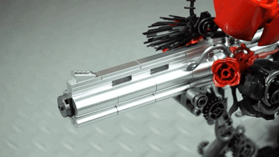 Where sharp steel meets blooming romance, the Guns & Petals brick sculpture comes to life. The sleek silver handgun symbolizes strength and decisiveness, while the lush red roses express passion, allure, and untamed freedom.